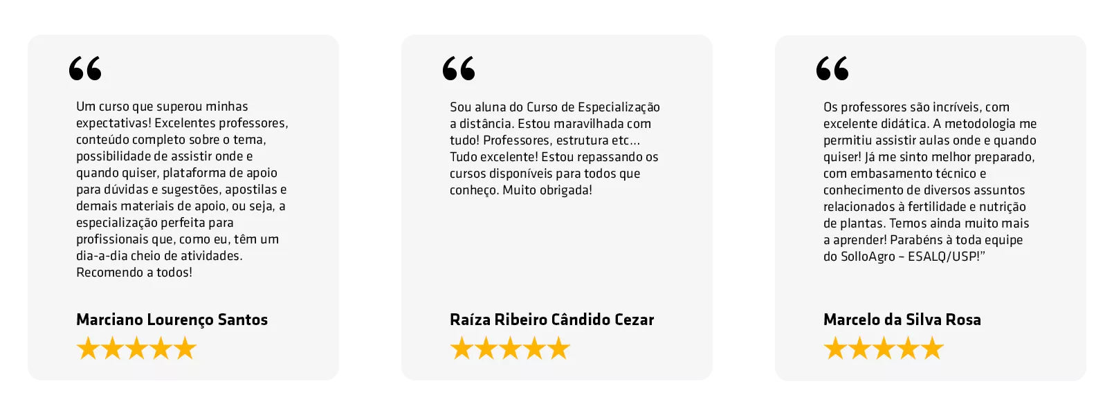 Com uma trajetória dedicada a levar o conhecimento de ponta do agronegócio, o SolloAgro oferece cursos e treinamentos presenciais e a distância que potencializam o currículo de seus alunos, com certificação USP para especializações.